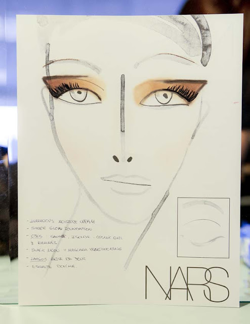 En cuanto a la parte beauty os puedo decir que la firma cosmética Nars fue la encargada, por segunda vez consecutiva, del maquillaje del desfile. Referencia de los desfiles de Marc Jacobs, Alexander Wang, Thakoon o Helmut Lang, entre otros, el look elegido para esta ocasión se define como femenino, elegante, futurista…