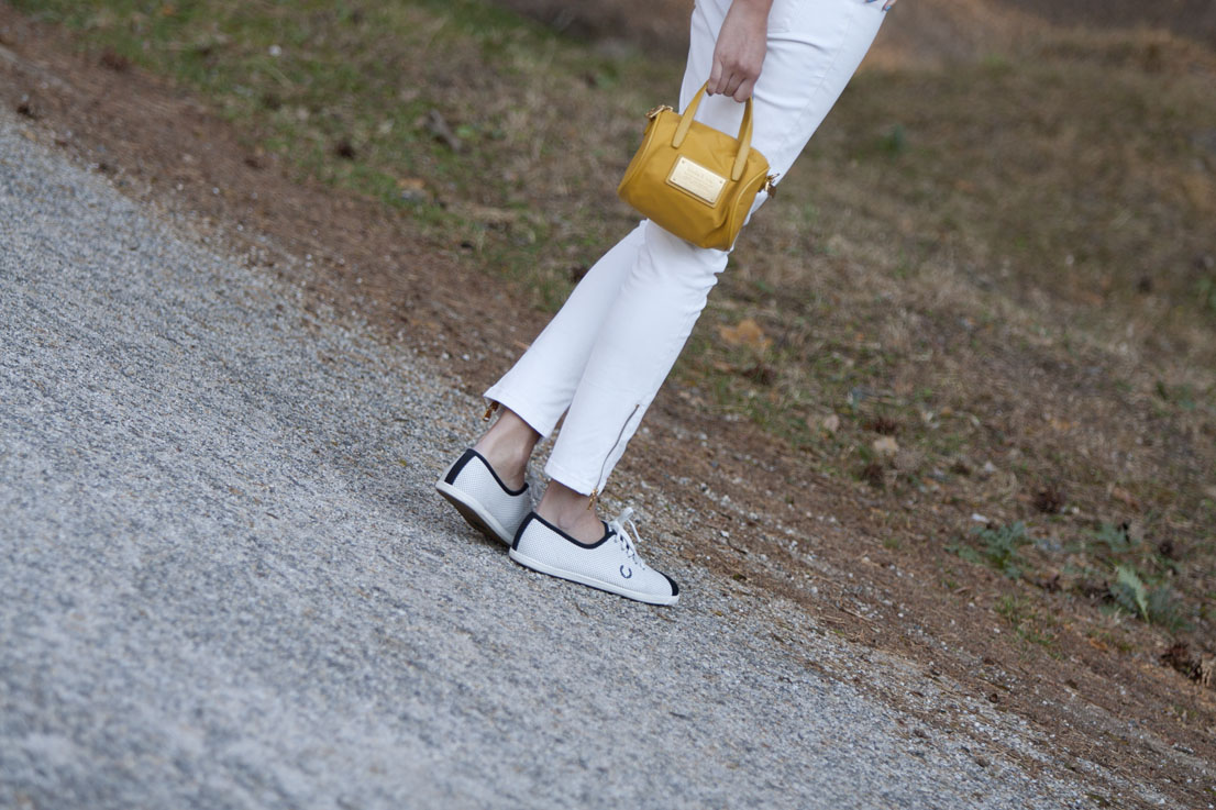 Yo en esta ocasión he hecho un mix. Por un lado lo he combinado con unas zapatillas Fred Perry, sin duda un calzado de lo más cómodo y chic que ya os enseñé aquí, un microbolso de Bimba y Lola que me encanta, y que hace juego con la camiseta de lino con manga murciélago en tono mostaza, de la misma marca; unas Ray-Ban, y un collar de Cortefiel de argollas doradas: un toque chic para un look muy informal perfecto para salir a tomar algo, un día de shopping o un viernes en la oficina. ¿Qué os parece?